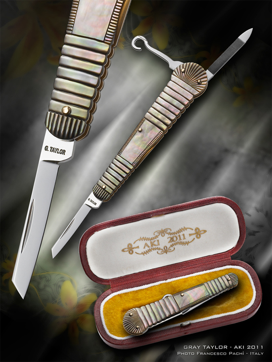 Folding knives created by Mr. Taylor for the 2011 Art Knife Invitational. He was awarded the Buster Award for the second time at this show.